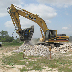 Allow us to recycle concrete, rock onsite. Eliminating trucking and dump fees with our Excavator mounted Crusher Bucket.
